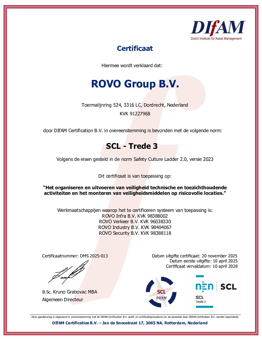 ROVO is zich bewust van het belang van tevreden opdrachtgevers. Dit besef komt tot uiting in ons policy statement, het QHSE-managementsysteem en in de gehele organisatie, die een open en coöperatieve houding heeft aangenomen en daarmee haar effectiviteit bij de realisatie van projecten heeft bewezen.